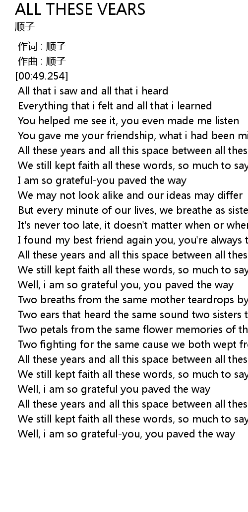 | 歌曲 | ALL THESE VEARS |