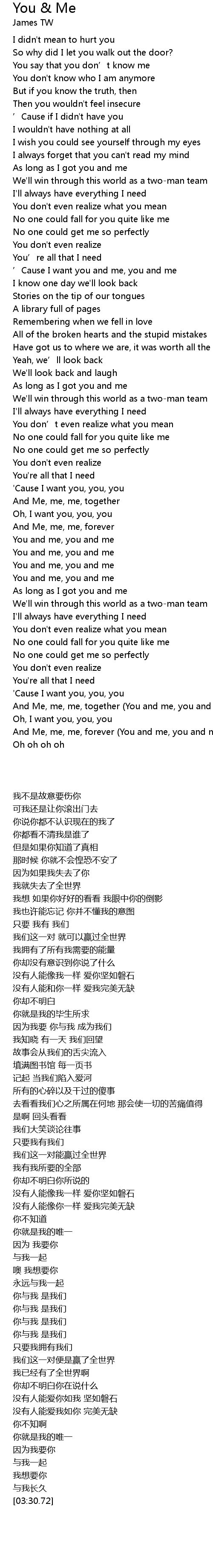 | [03:18.08] | And Me, me, me, together You and me, you and me |