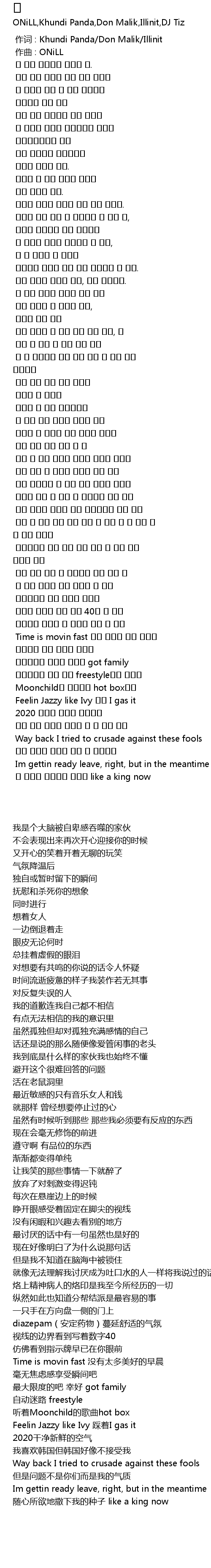 | [00:00.000] | 作词 : Khundi Panda/Don Malik/Illinit |