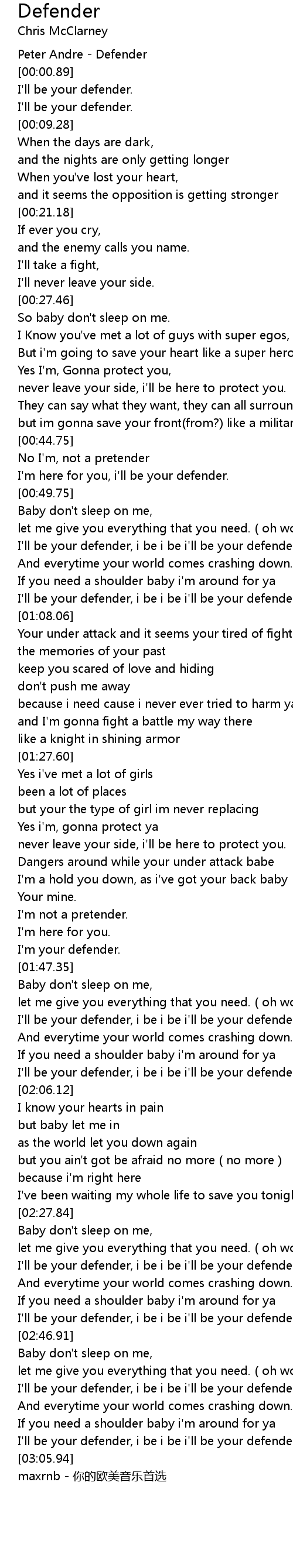 | [03:02.23] | I'll be your defender, i be i be i'll be your defender. |