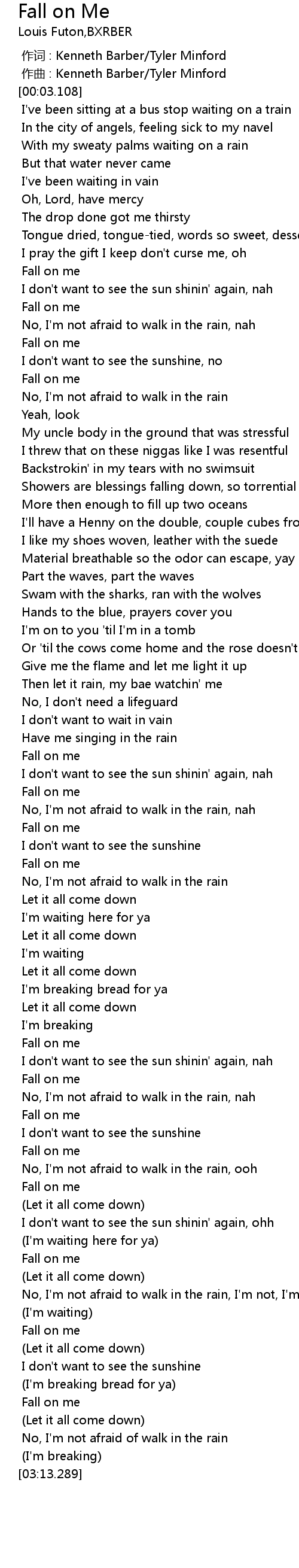 | [01:50.779] | No, I' m not afraid to walk in the rain, nah |