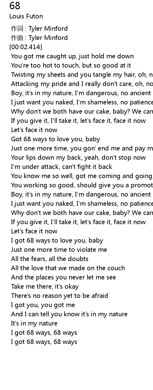 | [01:00.970] | Got 68 ways to love you, baby |