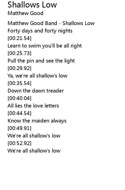 | [00:06.87] | Matthew Good Band - Shallows Low |