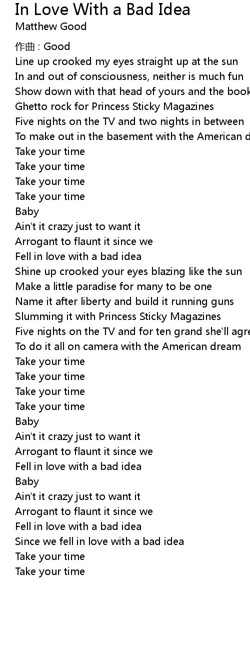 | 歌曲 | In Love With a Bad Idea |
