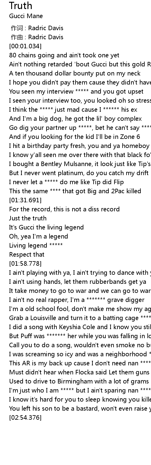 | [01:45.789] | It's Gucci the living legend |