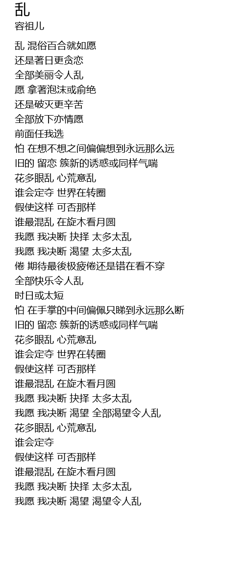 | [02:05.52] | 花多眼乱 心荒意乱 |