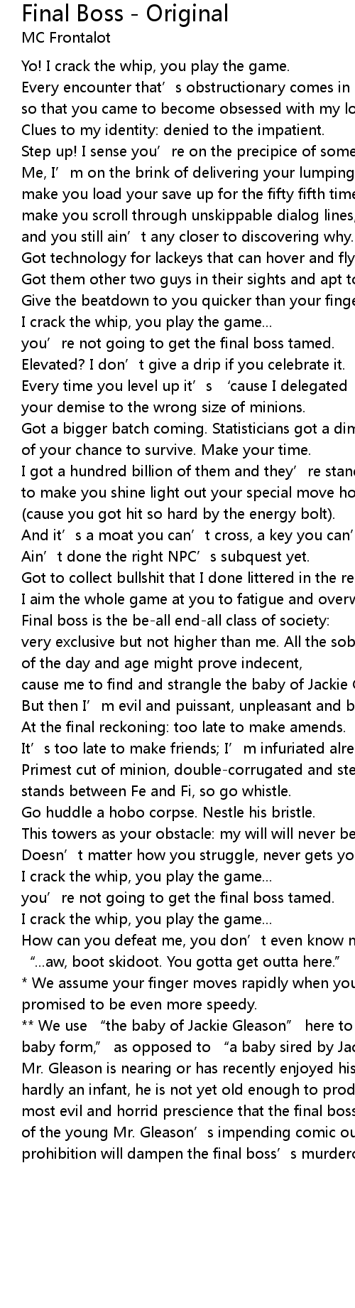 | 歌曲 | Final Boss - Original |