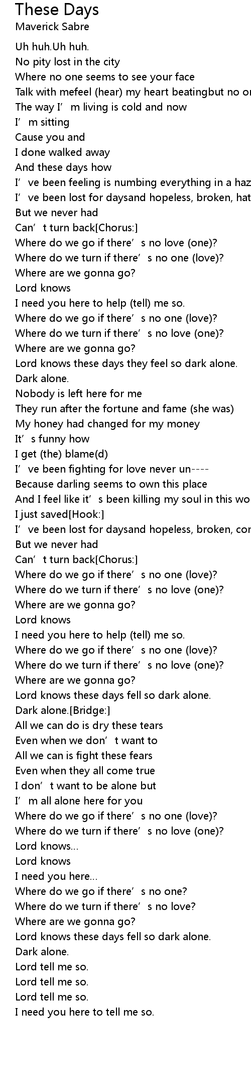 | Lord knows these days they feel so dark alone. | |