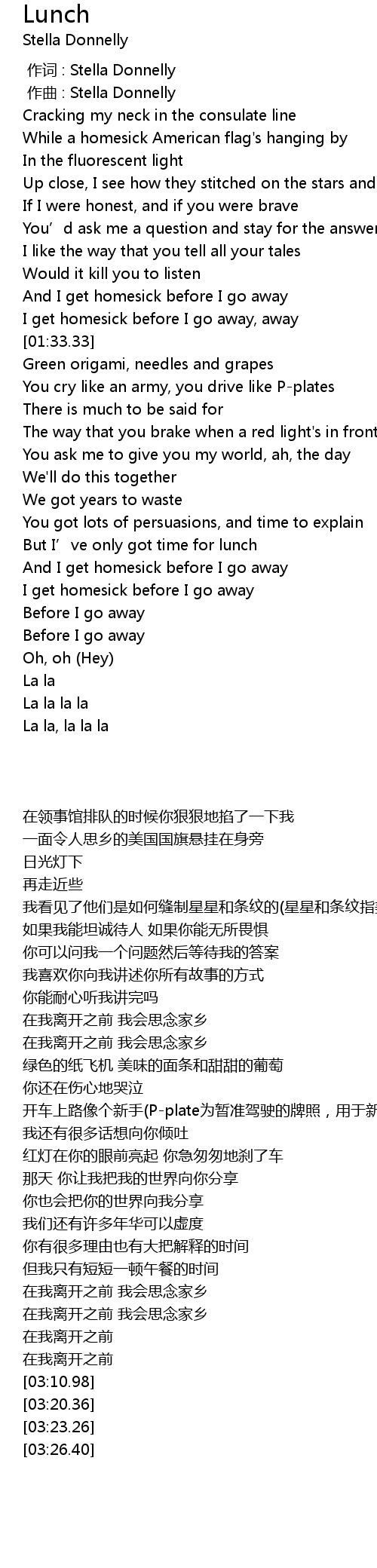 | [00:00.000] | 作词 : Stella Donnelly |