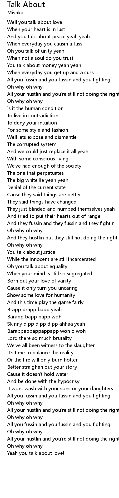Oh you talk of unity yeah |