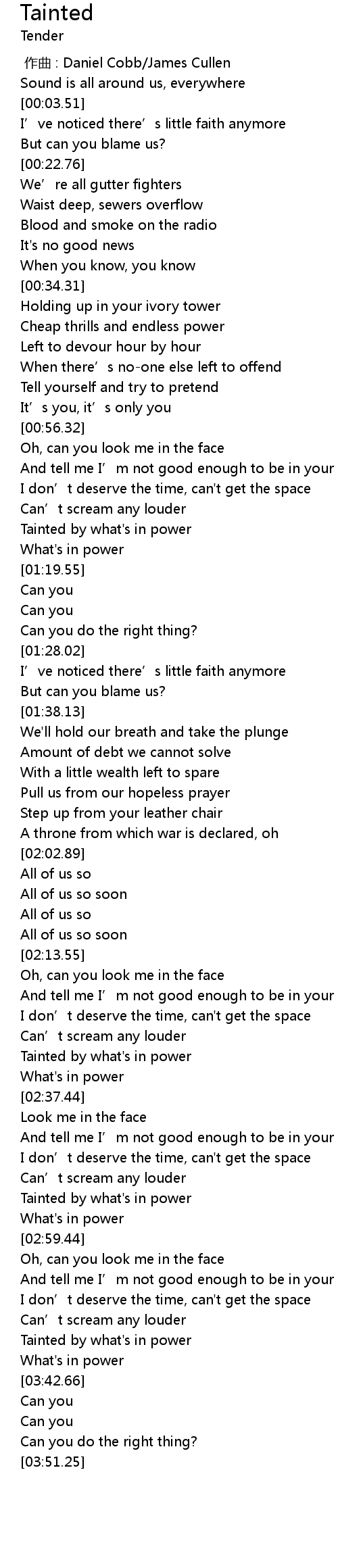 | [03:37.00] | Tainted by what's in power |