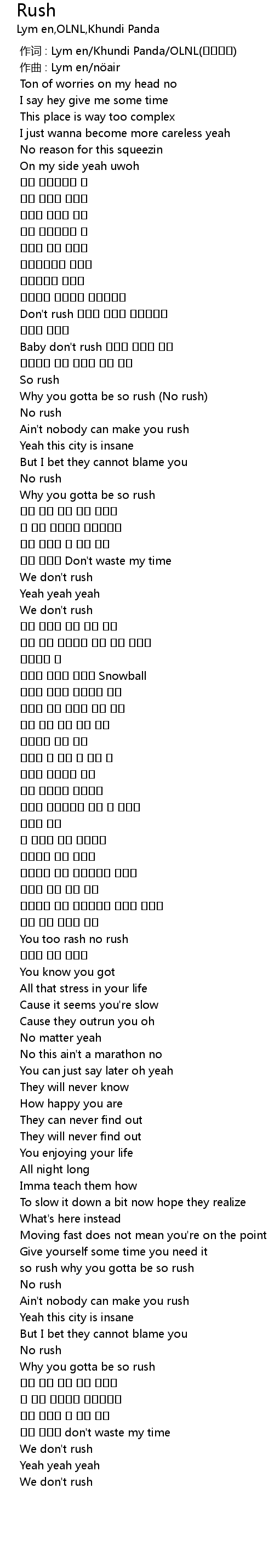 | [02:11.005] | You too rash no rush |