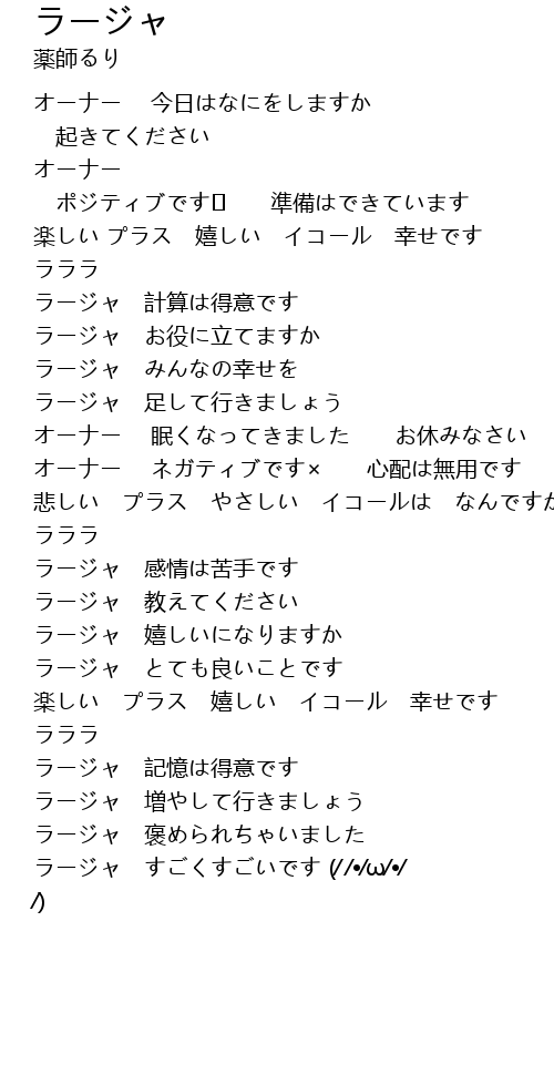 | [02:54.224] | 楽しい プラス 嬉しい イコール 幸せです |