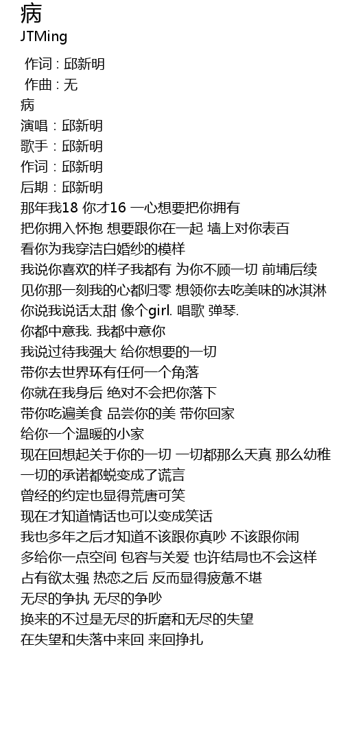 | [01:38.125] | 多给你一点空间 包容与关爱 也许结局也不会这样 |