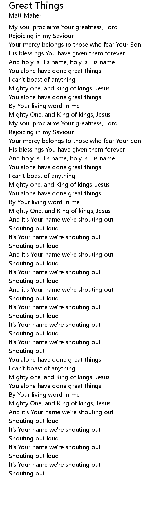 And it's Your name we're shouting out |