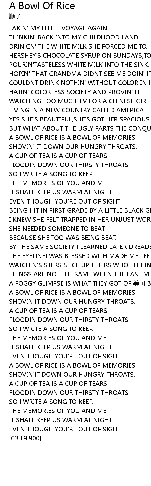 | 歌曲 | A Bowl Of Rice |