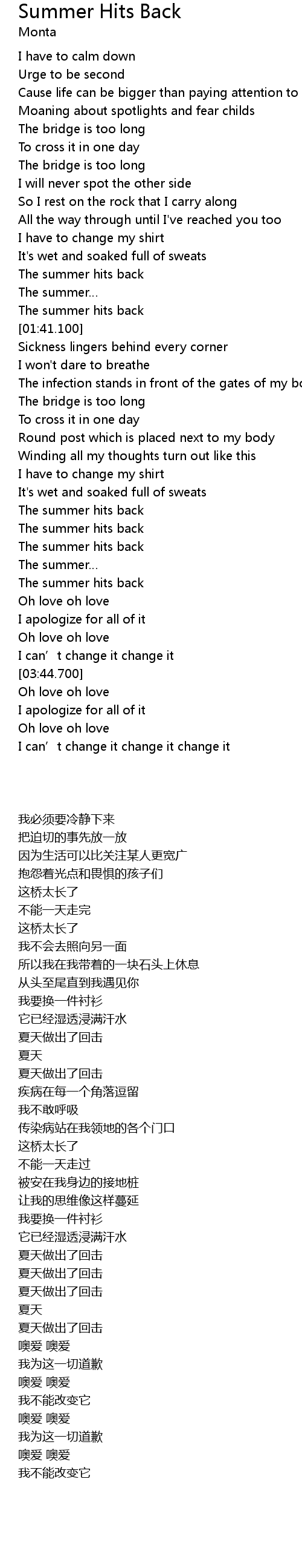 | [01:27.100] | It' s wet and soaked full of sweats |