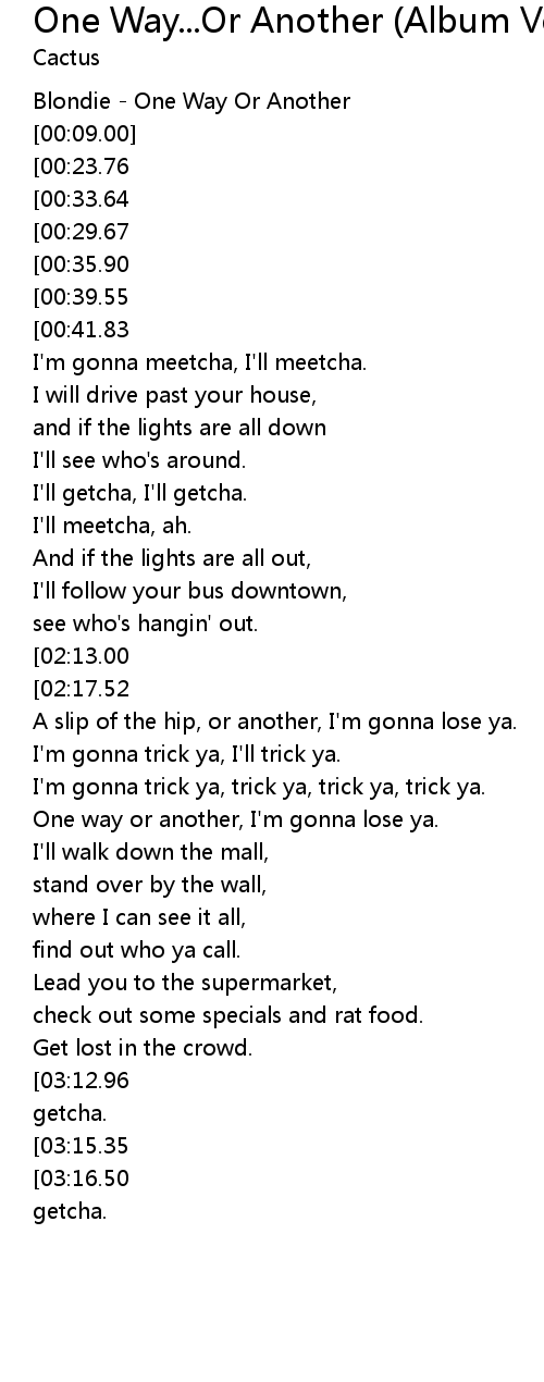 One way or another, I'm gonna lose ya. |