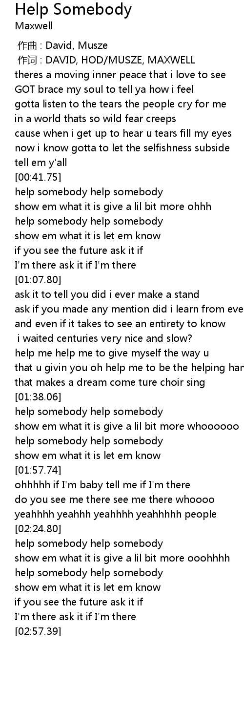 | [00:42.06] | help somebody help somebody |