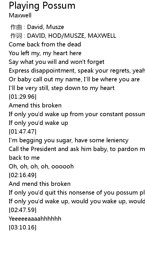 | [01:34.64] | If only you'd wake up from your constant possum playing |