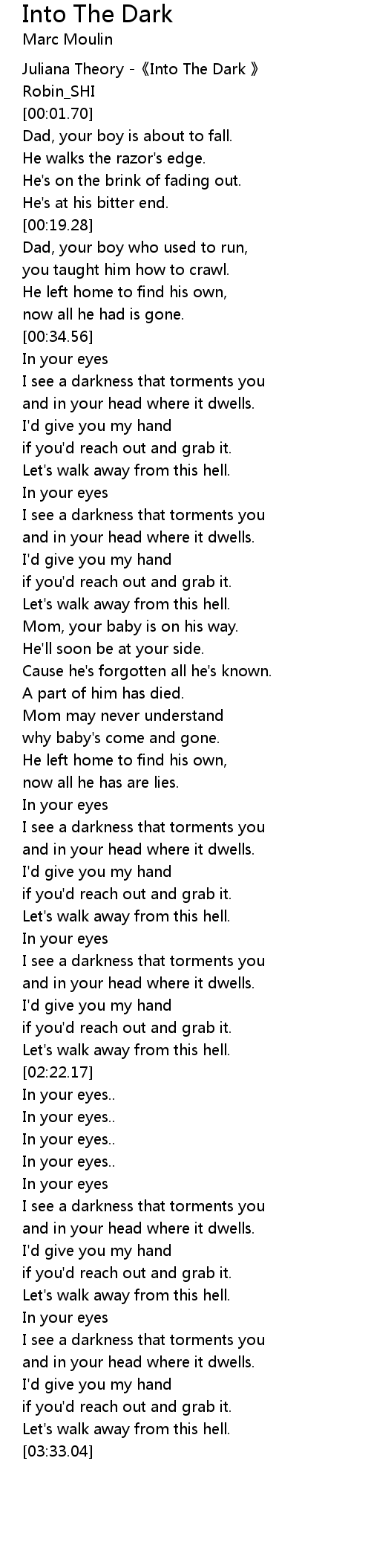 | [00:-2.25] | Juliana Theory -《Into The Dark 》 |