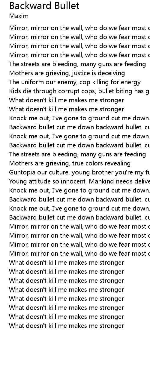 Backward bullet cut me down backward bullet. cut me down |