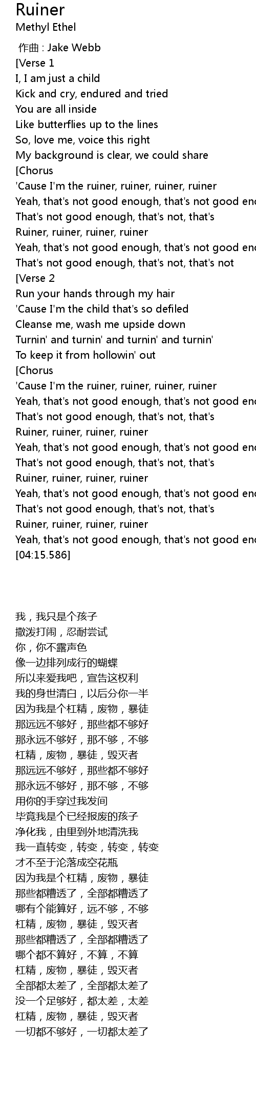| [03:19.344] | 'Cause I'm the ruiner, ruiner, ruiner, ruiner |