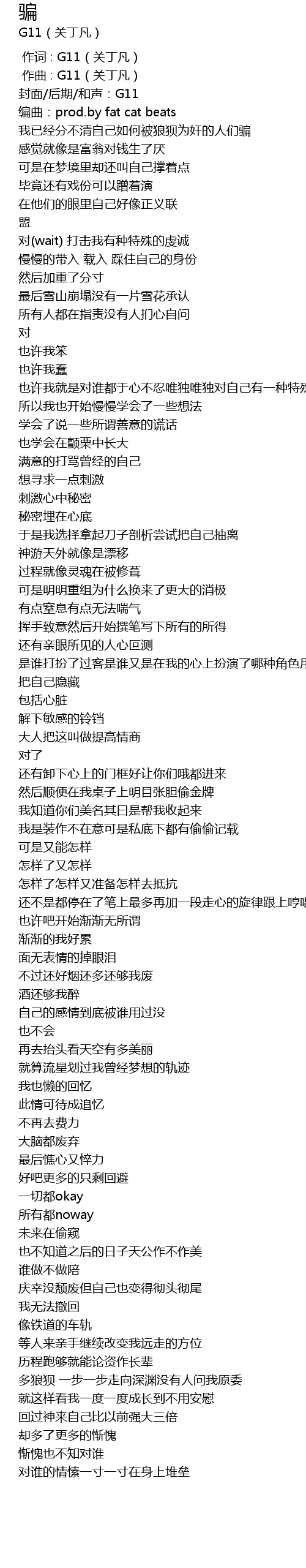 | [00:08.756] | biān qǔ: prod. by fat cat beats |