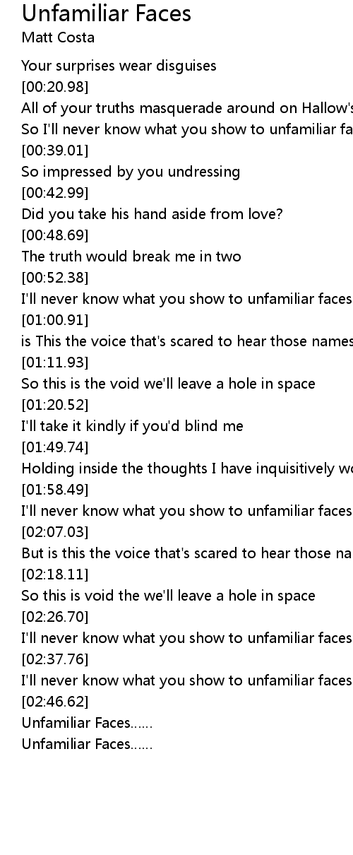 | [02:58.99] | Unfamiliar Faces |
