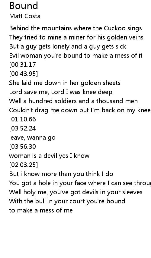 | [02:22.77][01:10.66] | cause Bound londle Bound…… |