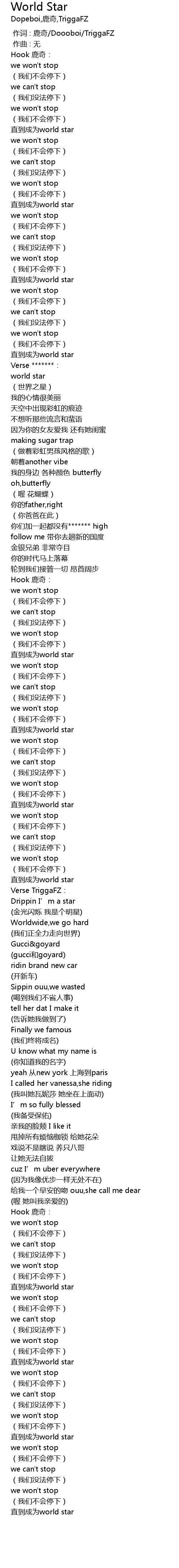 | [00:00.000] | 作词 : 鹿奇/Doooboi/TriggaFZ |