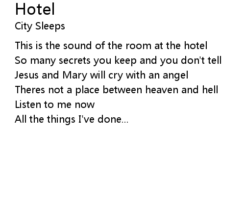 | 歌曲 | Hotel |