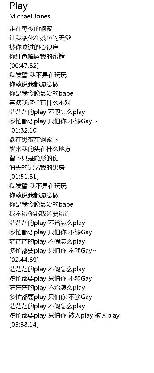 | [03:28.17] | 多忙都要play 只怕你 被人play 被人play |