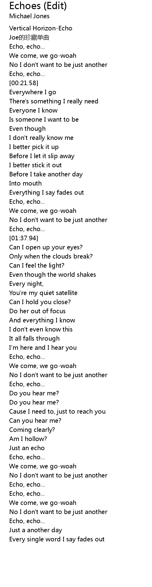 | [01:15.22] | Echo, echo... |