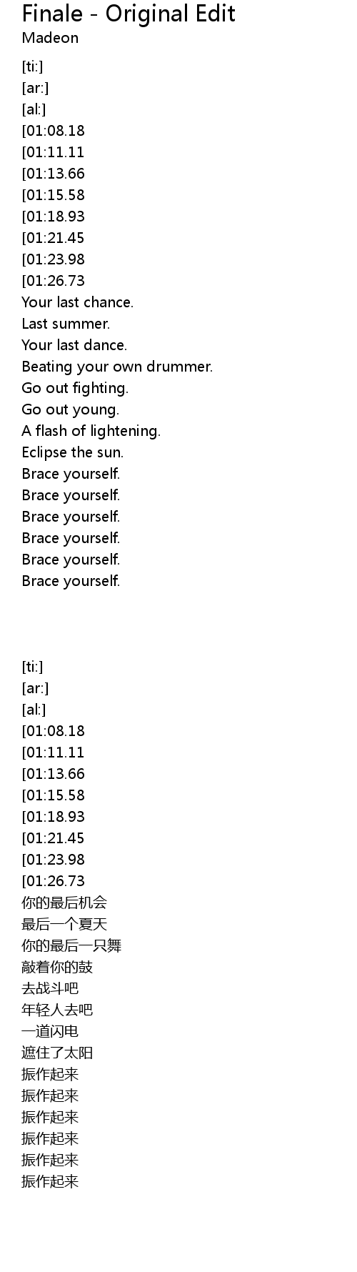 | [02:44.78][01:08.18] | 你的最后机会 |