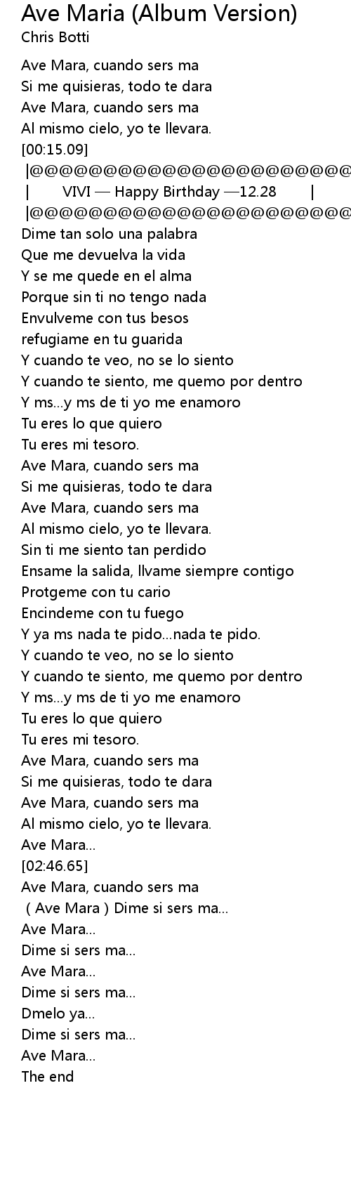| [02:53.09] | Ave Mara, cuando sers ma |