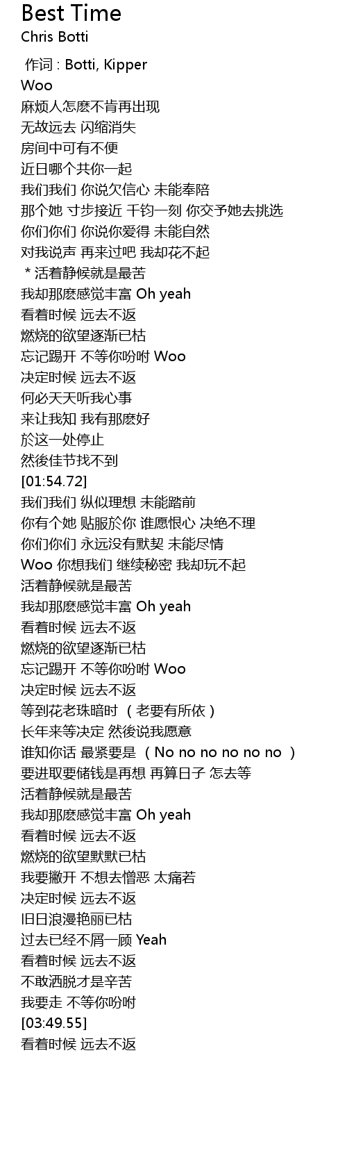 | [00:00.00] | 作词 : Botti, Kipper |