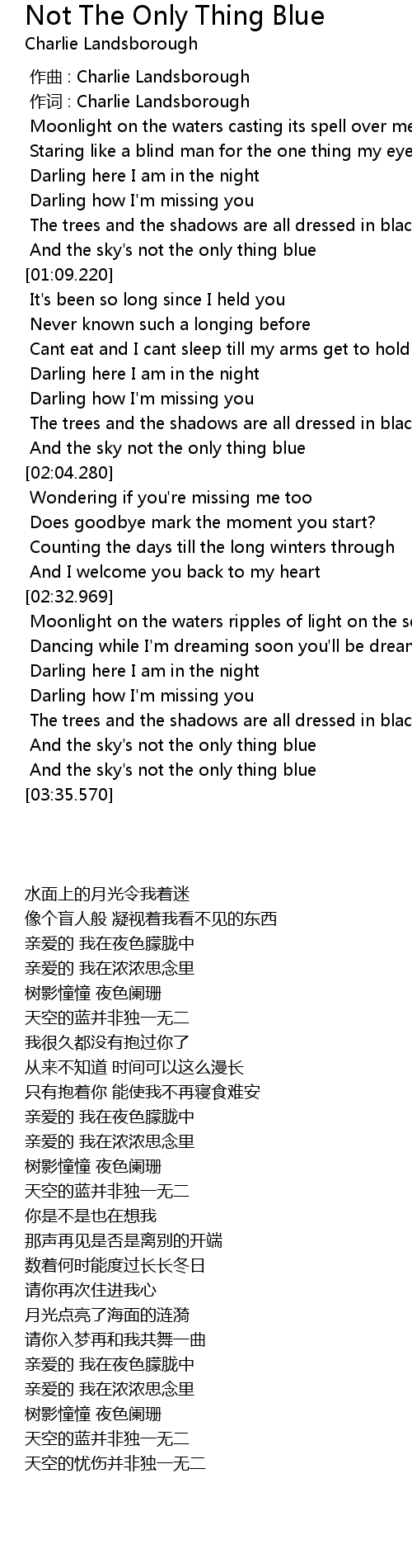 | [00:01.00] | zuo ci : Charlie Landsborough |