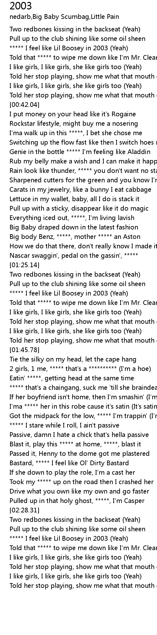[02:34.61] ***** I feel like Lil Boosey in 2003 (Yeah)