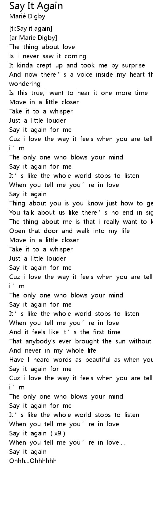 | [00:17.05] | Is this true, i want to hear it one more time |