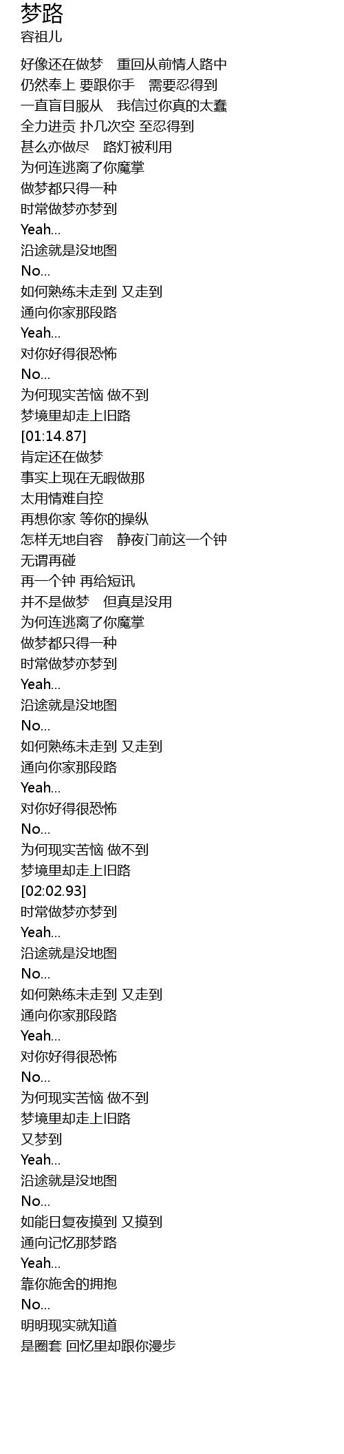| [01:59.59] | mèng jìng lǐ què zǒu shàng jiù lù |