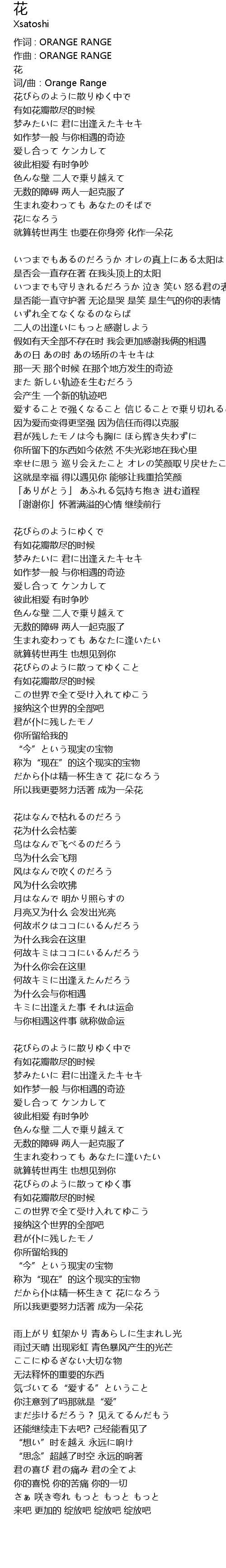 | 词/曲:Orange Range | |