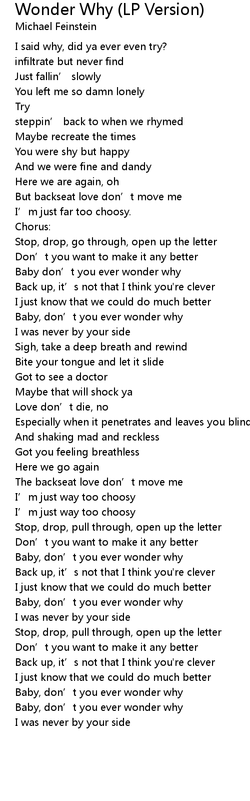 | [02:22.16] | Baby, don’t you ever wonder why |