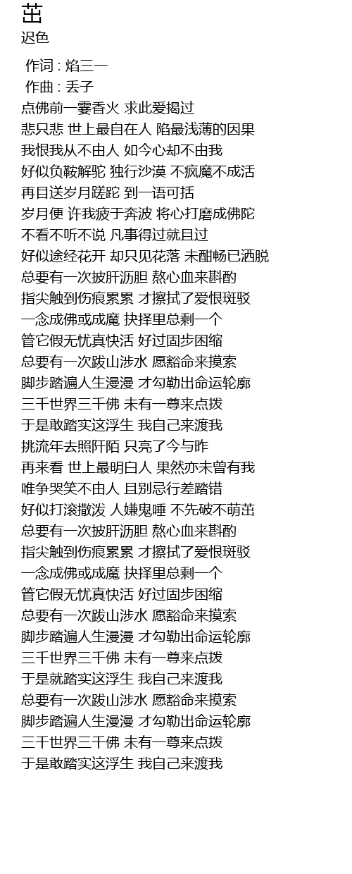 | [00:25.08] | 好似负鞍解驼 独行沙漠 不疯魔不成活 |