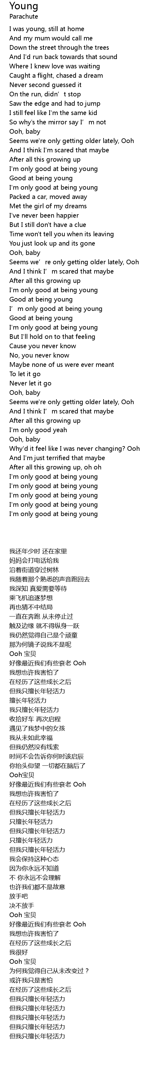 | [00:48.13] | Seems we're only getting older lately, Ooh |