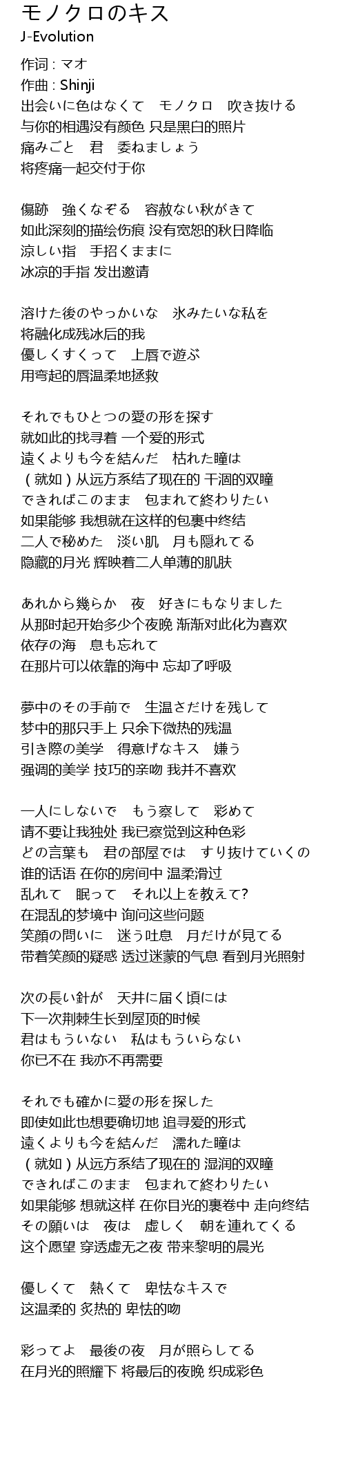 | 歌曲 | モノクロのキス |