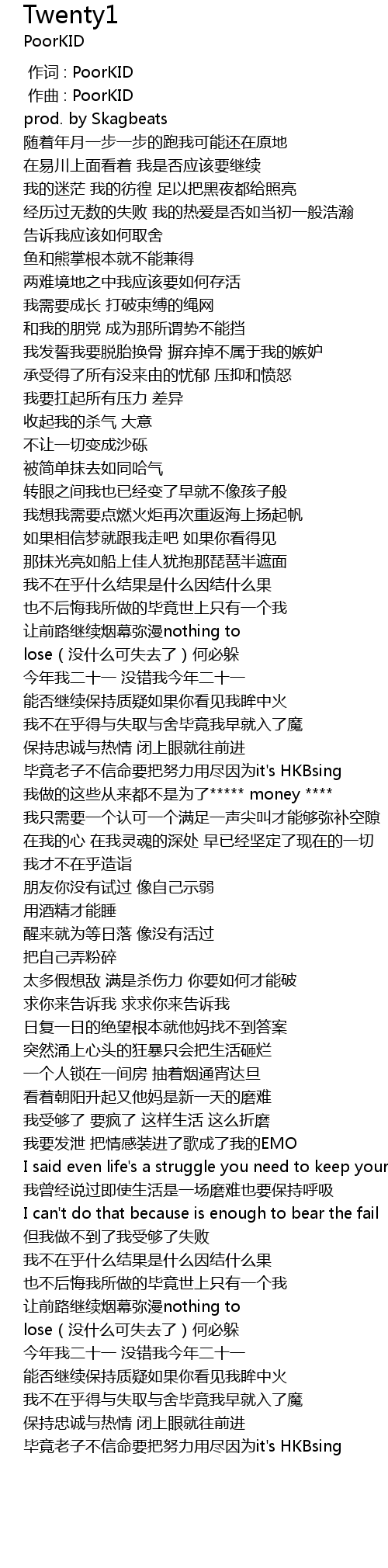 | [00:00.000] | 作词 : PoorKID |