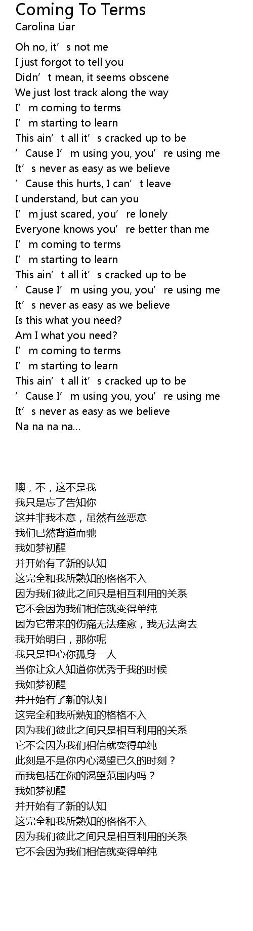 | [01:21.67] | ' Cause I' m using you, you' re using me |