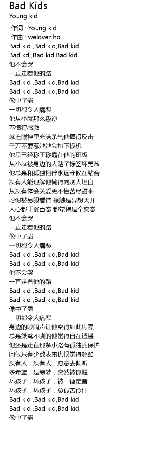 | [00:20.684] | Bad kid , Bad kid, Bad kid |