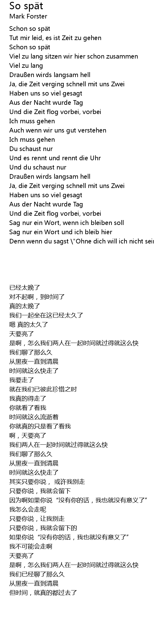 | 歌曲 | So spät |